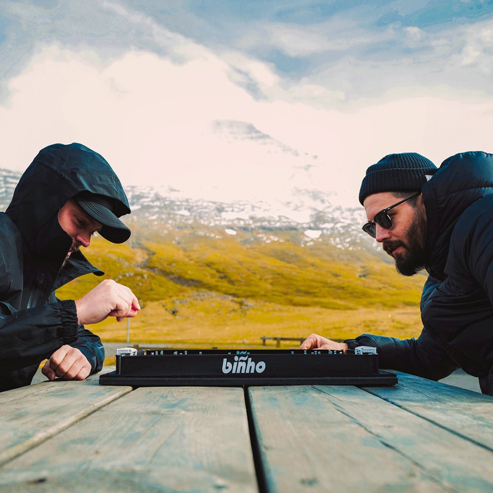 Each game comes with 2 Binho balls, 2 scoring pieces, and 2 yellow/red playing cards and a Binho Rule Card all within a Binho box.